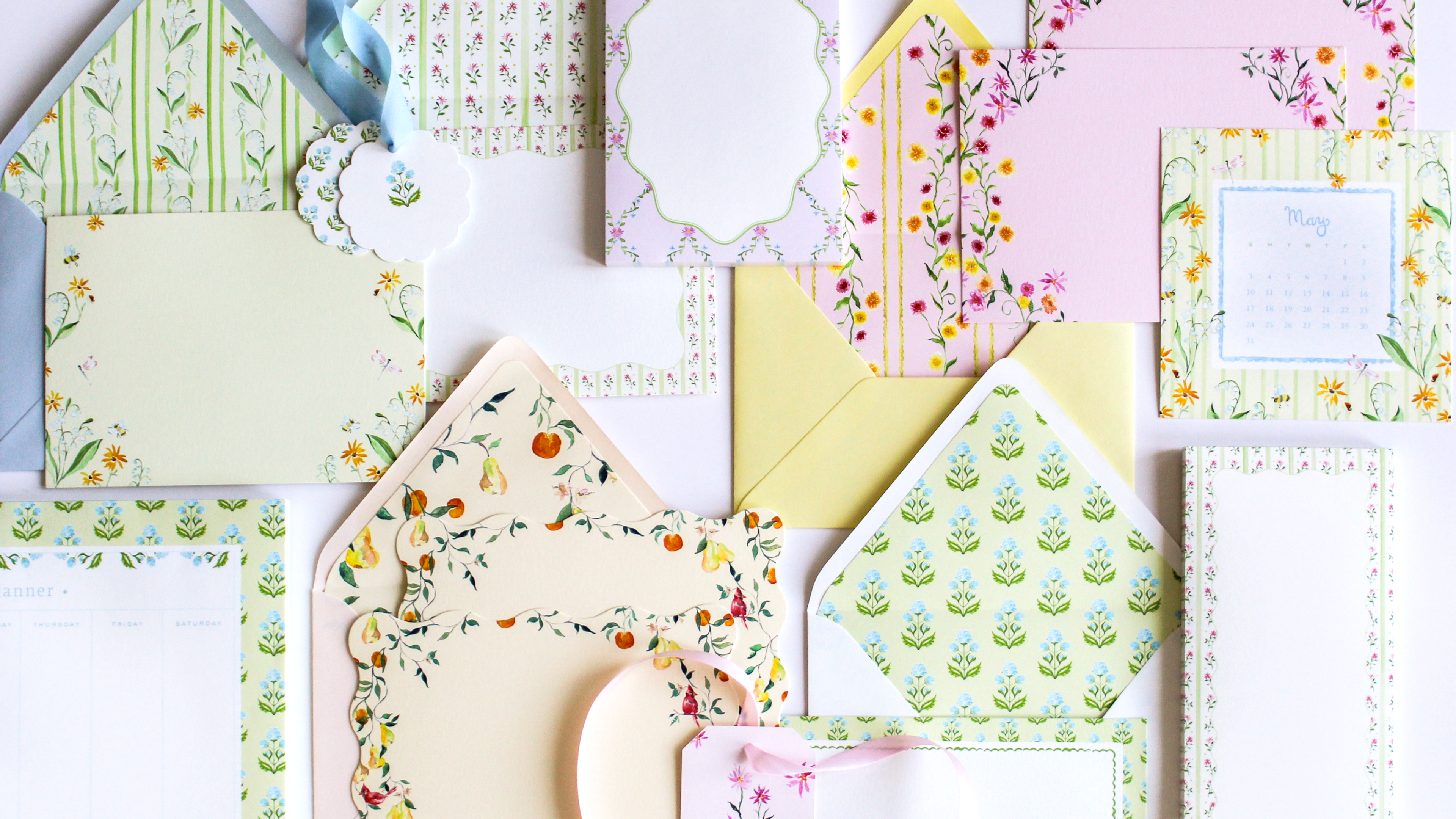 Thoughtfully crafted and featuring hand-painted signature artwork from the Studio, these pretty paper goods bring a touch of inspired elegance to any desk or home.